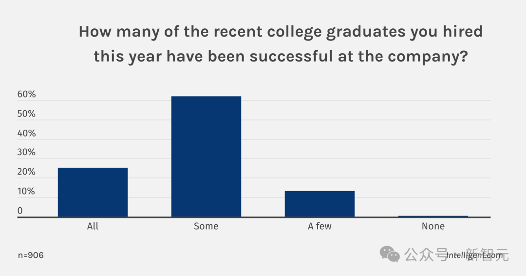 诠释指出,仅有 25% 的公司示意整个应届毕业生阐扬优异,而 62% 的公司示意只好部分阐扬优异。