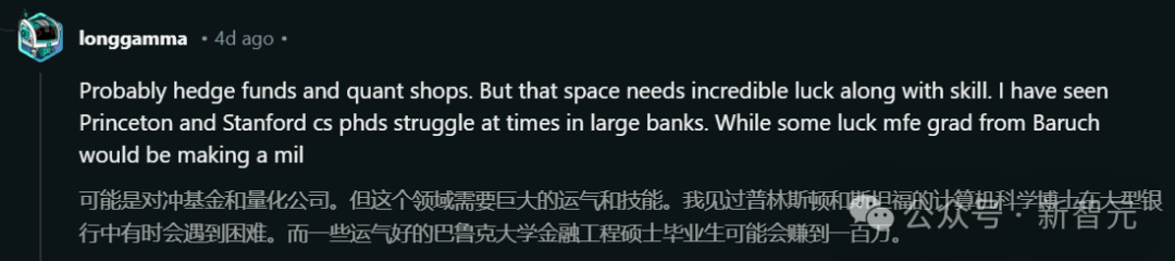 或者,不错去卷对冲基金和量化。这个行业空间很大,可能普林斯顿和斯坦福的筹谋机博士举步维艰,但 Baruch 硕士生却能拿到百万年薪。